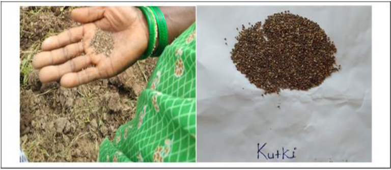 4.3.4 Kutki Millet: Little millets known as saamai or kutki are short-duration millets and withstand both drought and waterlogging. There are three types of kutki generally cultivate in this village i.e. Bhadeli kutki, Badi kutki and Sitai kutki. Little millet is also a yearly crop having 30–90-cm hollow jointed stem with slender and robust base, leaves are linear and can be 15–50 cm in length to 12–25 cm in breadth, while the nodes are glabrous, seeds are grown during the period from June to July or between February and March (V. A. Tonapi et al., 2015). Its grain size is approximately 2.5 ∗ 1.5 mm with 1.9 g of approximate kernel weight oval in shape, and the colour is creamy with shiny appearance (J. Taylor et al., 2017).