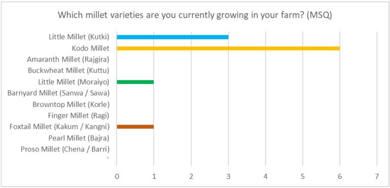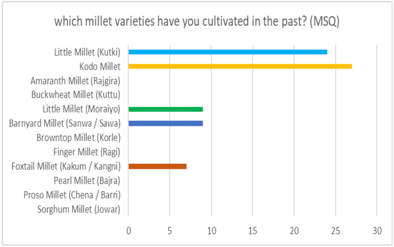 The decline in millet production and usage in Baherakhar village is a significant concern that requires a thorough examination of the factors contributing to this downward trend. Millets have long been an integral part of the local agricultural practices, cultural heritage, and dietary patterns, providing essential nutrition and sustaining livelihoods for generations. However, the survey data indicates a substantial decrease in millet cultivation, with a negative impact on the community’s food security and traditional way of life. To address this issue effectively, it is crucial to identify the underlying reasons behind the decline.